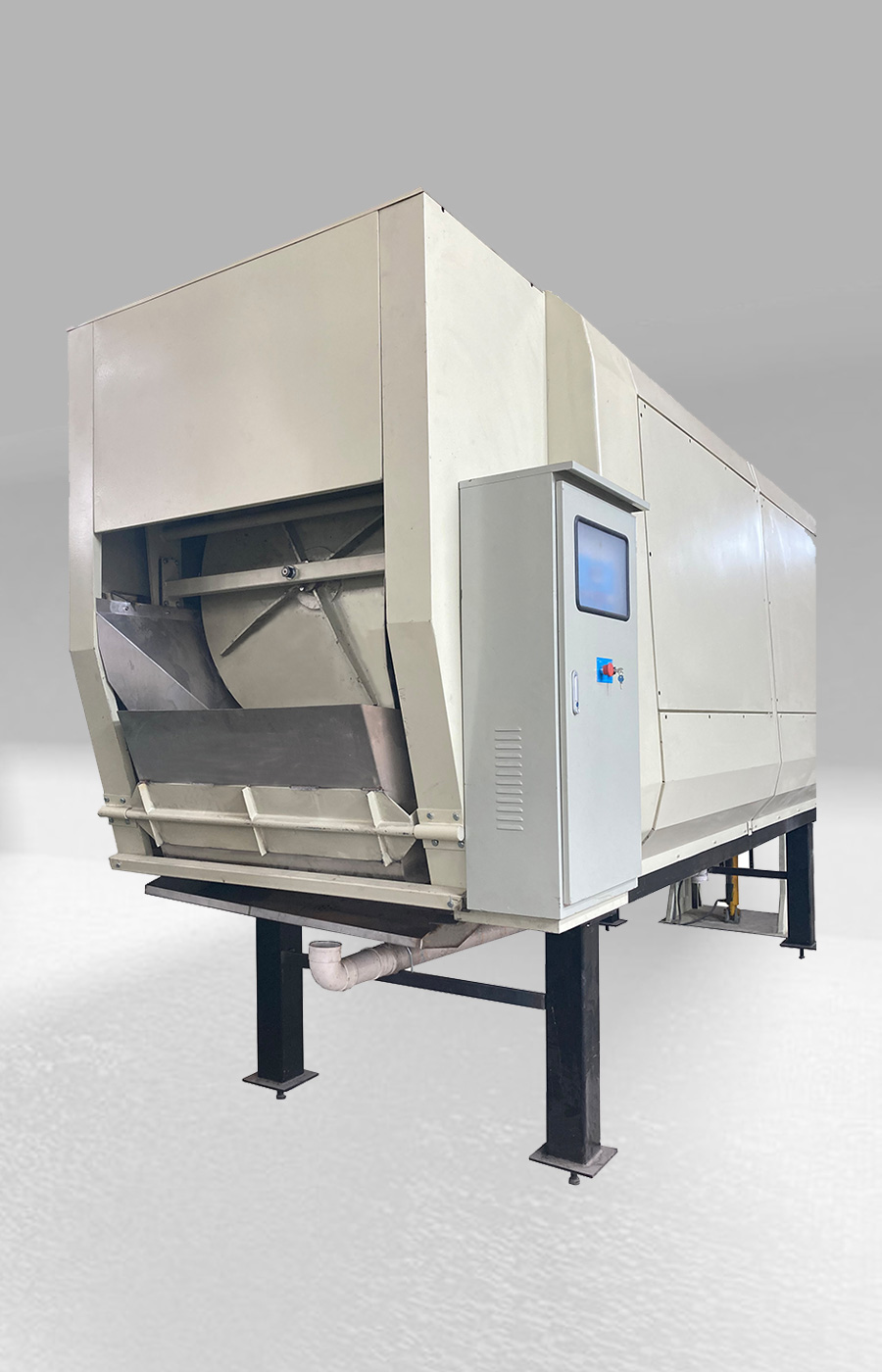 工作原理:滾筒螺旋葉片旋轉(zhuǎn)壓縮儲存。滾筒和葉片采用SUS304不銹鋼板制造,耐腐蝕性好。當垃圾進入滾筒內(nèi),滾筒旋轉(zhuǎn),在螺旋葉片作用下壓縮垃圾...